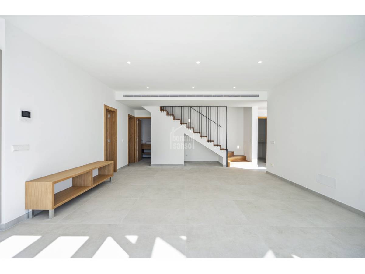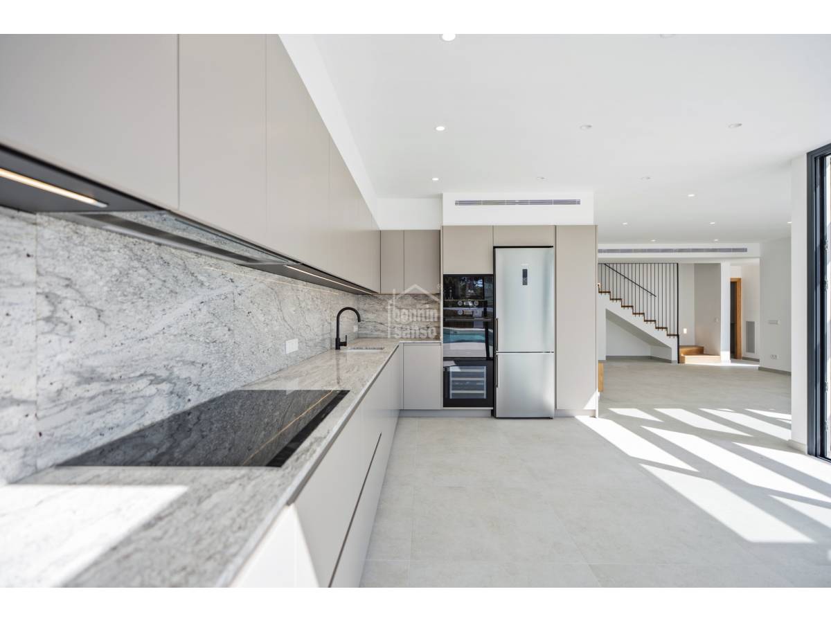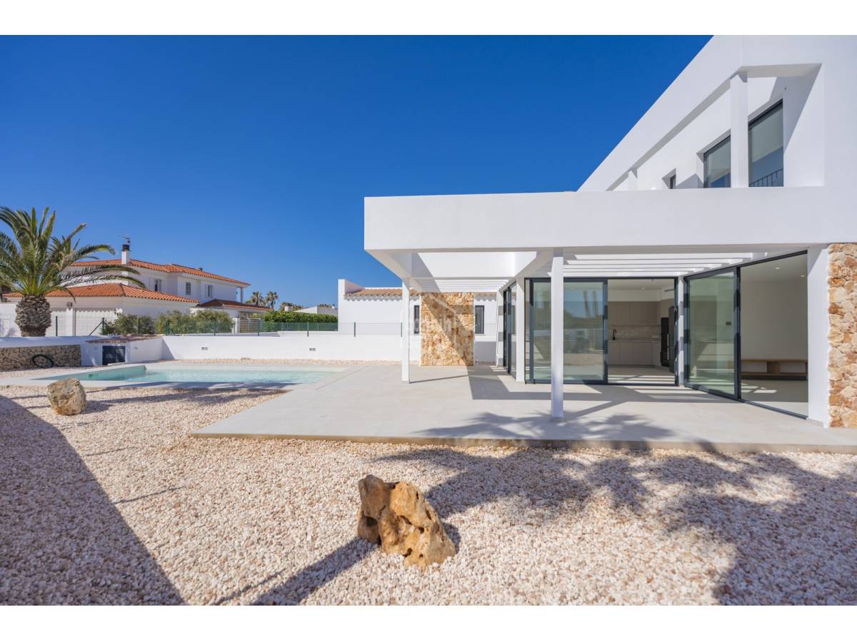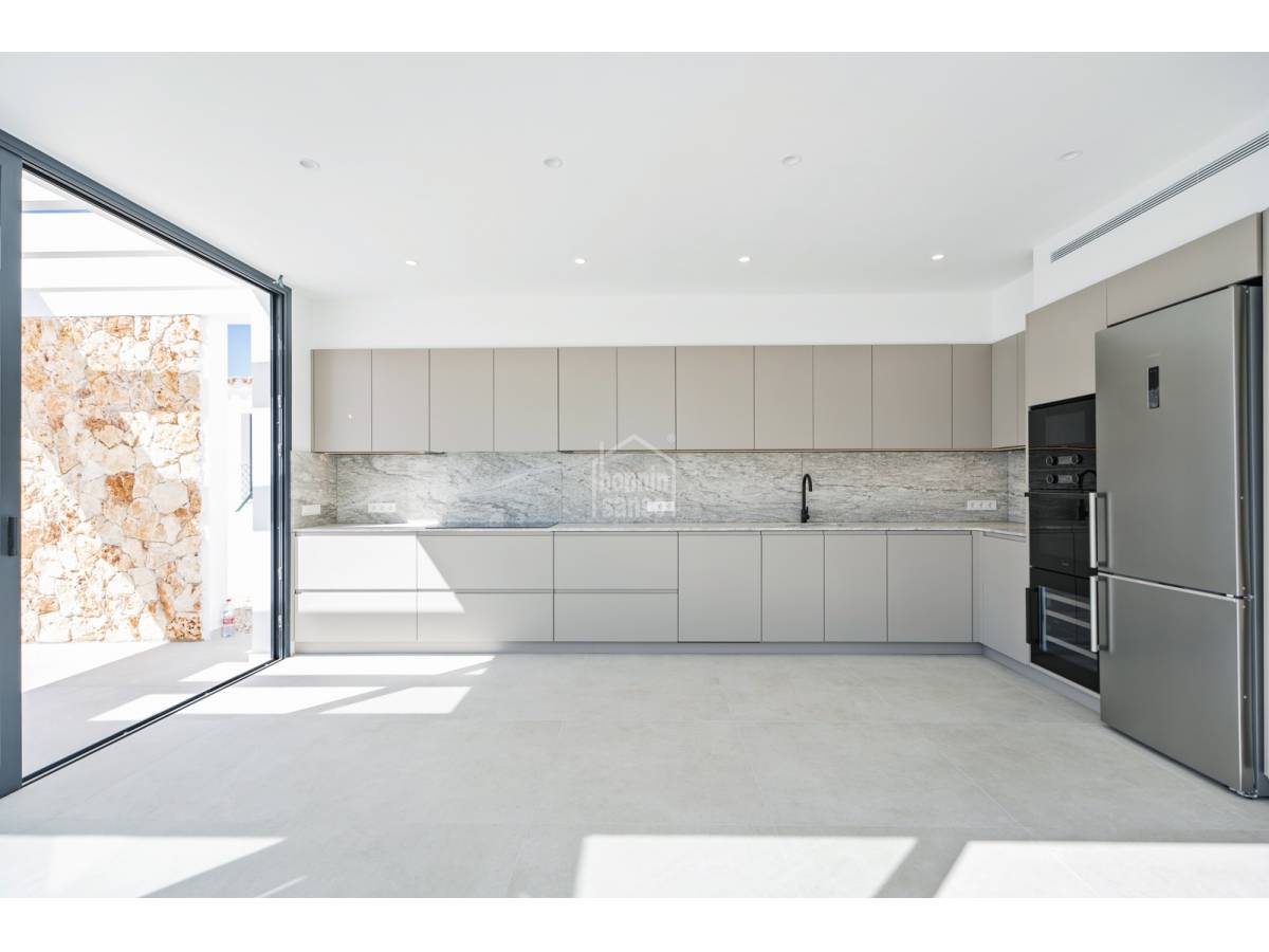 Te presentamos una magnífica vivienda de nueva construcción ubicada en Son Blanc, una de las áreas más demandadas de Menorca. Asentada sobre una parcela privada de 600 m², esta propiedad combina un estilo contemporáneo con espacios amplios y acabados de gran calidad.