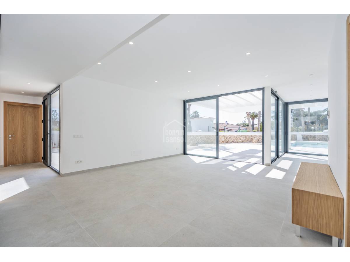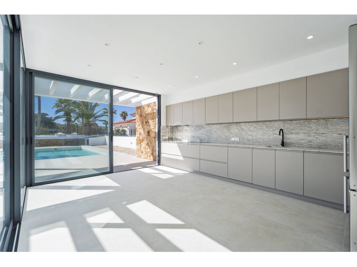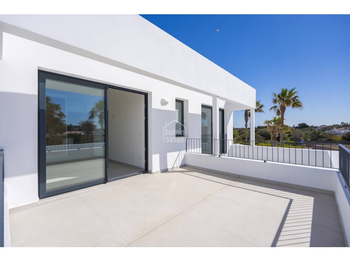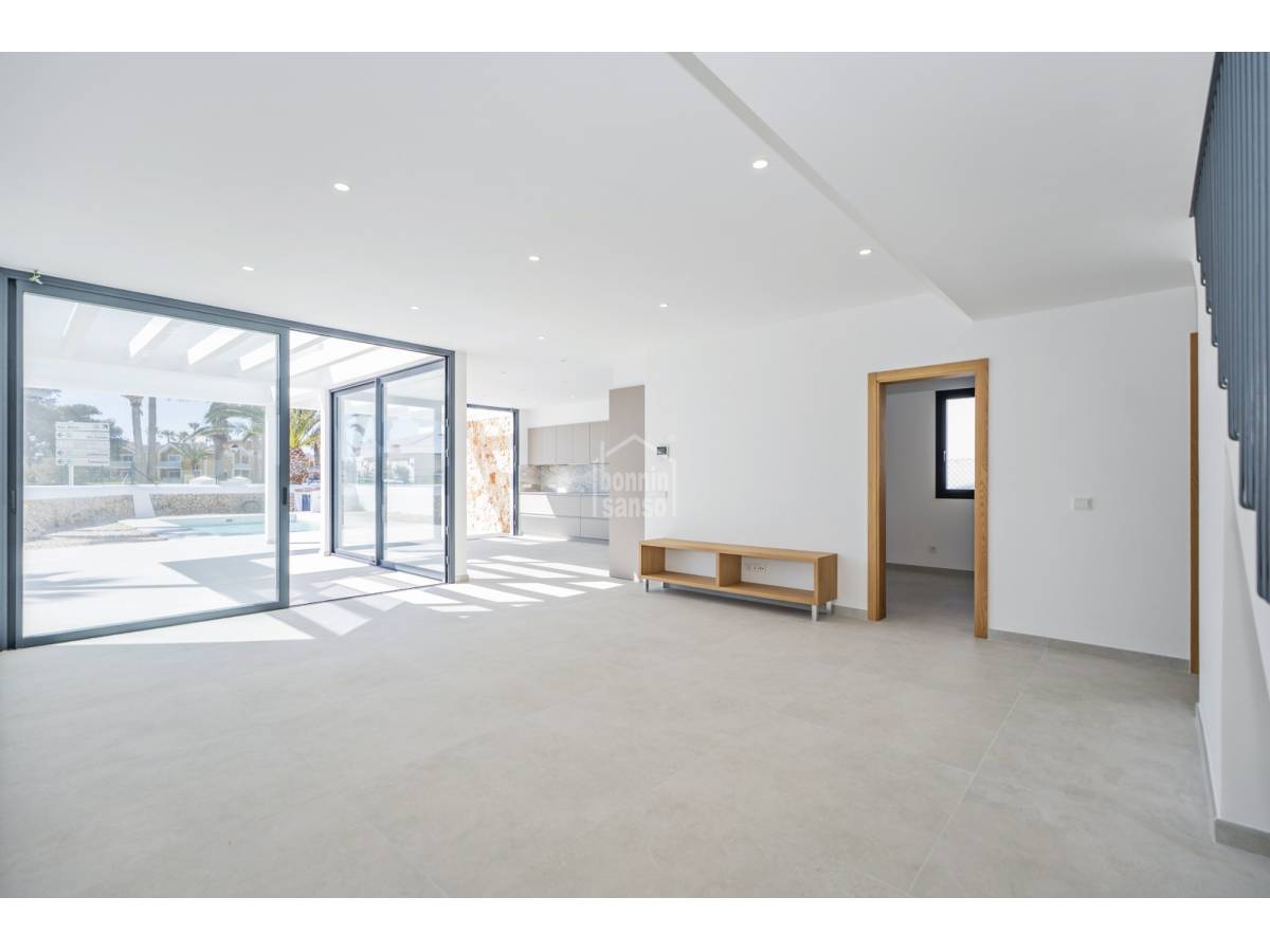 Te presentamos una magnífica vivienda de nueva construcción ubicada en Son Blanc, una de las áreas más demandadas de Menorca. Asentada sobre una parcela privada de 600 m², esta propiedad combina un estilo contemporáneo con espacios amplios y acabados de gran calidad.