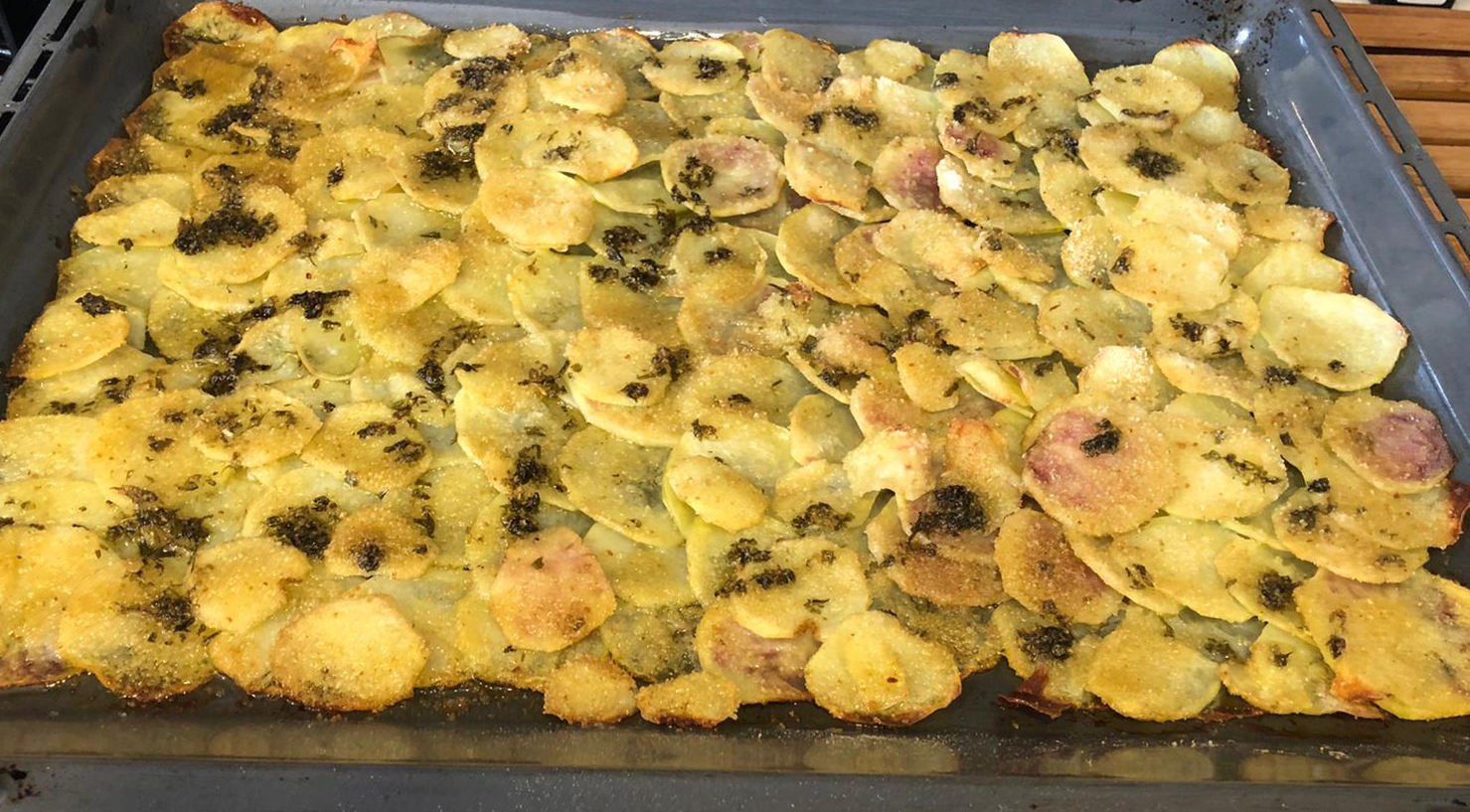 - Dans un plat allant au four mettre un peu d’huile d’olive et couvrir tout le plat avec les pommes de terre.