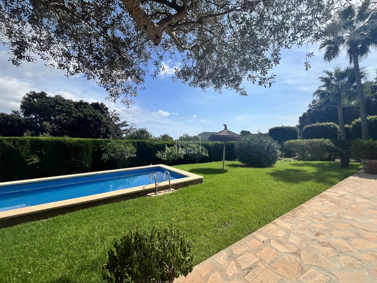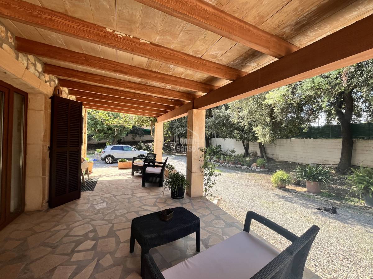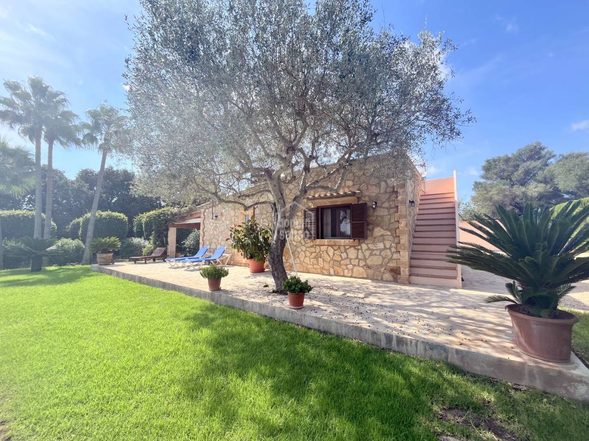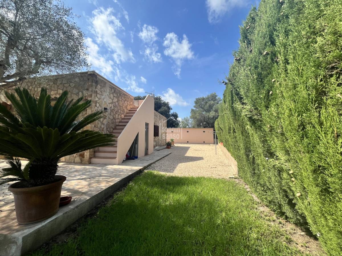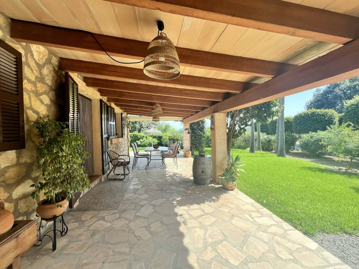 Beautiful stone finca of approx. 327 m² for rent, located in a peaceful area on the outskirts of the picturesque village of Son Servera. Just a 10-minute drive from some of the island's most beautiful beaches such as Cala Millor, Costa de los Pinos, and Sa Coma. The property offers three spacious bedrooms, two full bathrooms, a large open-plan living and dining area with a fully equipped American-style kitchen, and a laundry room. Outside, you'll find a beautifully maintained garden with native plants, a private swimming pool, several terraces and covered porches perfect for outdoor living, an exterior bathroom with shower, and a spacious garage. The house is equipped with a fireplace, air conditioning with heat pump, and central heating throughout. It is rented fully furnished and equipped — ready to move in.