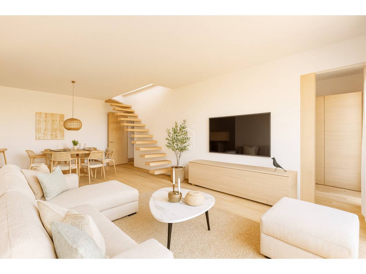 Ce lumineux duplex offre une distribution confortable et contemporaine, idéale pour ceux qui recherchent de l'espace et de l'intimité. Le rez-de-chaussée comprend un vaste salon-salle à manger avec cuisine intégrée, deux chambres et une salle de bain complète. À l'étage supérieur se trouve la chambre principale avec sa propre salle de bain et un accès à une agréable terrasse privée, parfaite pour profiter de l'extérieur.